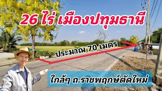 ที่ดินแปลงใหญ่ สวยๆ เมืองปทุมธานี ใกล้ถนนราชพฤกษ์ตัดใหม่ ( ราคาไร่ละ 4.2 ล้านบาท ) ที่ดินเปล่า ทำเลทอง ปทุมธานี–บางบัวทอง เนื้อที่ 26-3-16 ไร่ ติดถนนคอนกรีต ต.บางหลวง อ.เมือง จ.ปทุมธานี ขนาดโดยประมาณ 70 x 686 เมตร หน้าแปลงทิศใต้ ลมดีตลอดปี สถานที่ใกล้เคียง เข้าจากถนนกา